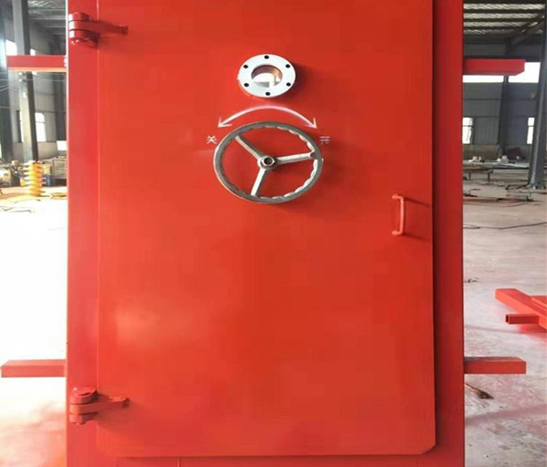 抗沖擊密閉門(mén)用于井下爆炸材料庫(kù)和爆炸材料發(fā)放硐室,起隔離作用阻止爆炸沖擊波及爆炸產(chǎn)生的火焰、有毒氣體向外部巷道擴(kuò)散,安裝在進(jìn)風(fēng)巷道處。